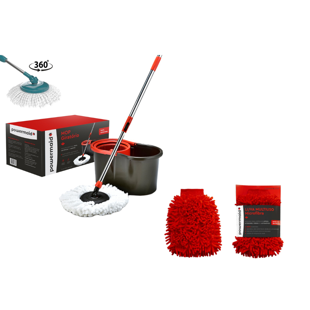 Mop Giratório Inox Kit Rodo de Limpeza Com Balde e Luva Microfibra