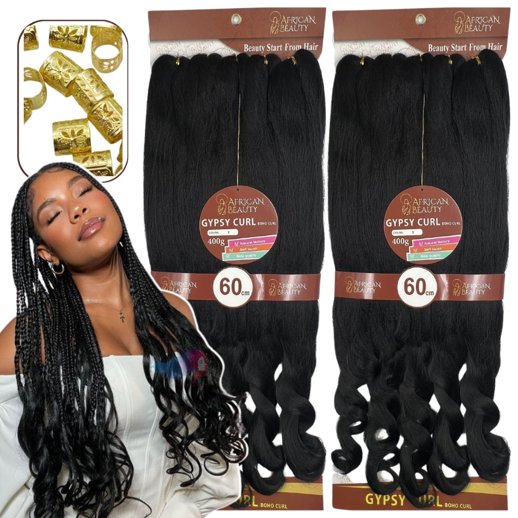 Kit 2 Cabelo Boho Curl Premium Gypsy Braids 400 Gr + Anéis