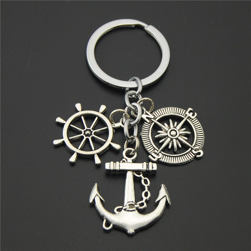 Chaveiro Wanderlust Compass Anchor Rudder Chains Feito A Mão