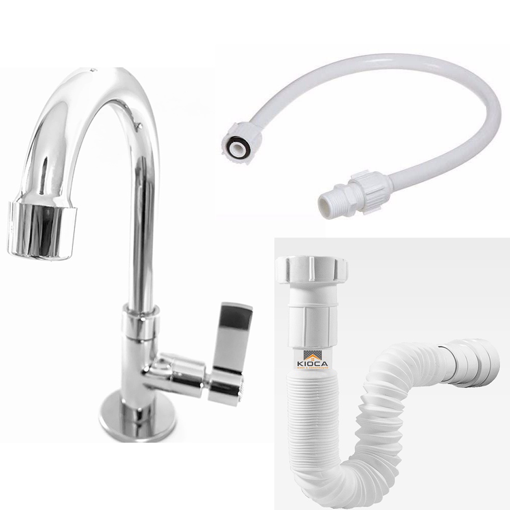 Kit Torneira Metal Cuba Lavatório Sifão e Flexível 40 cm