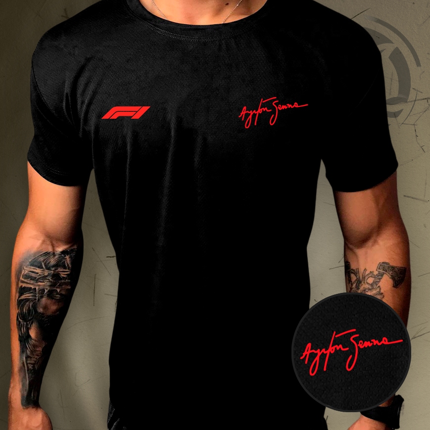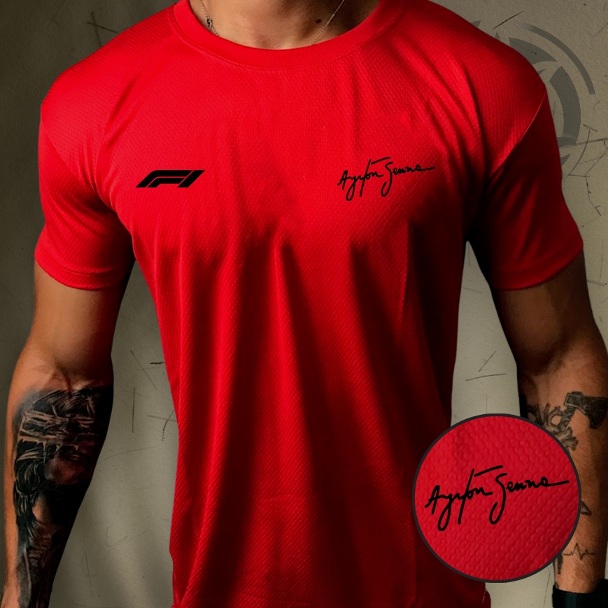 Camisa Dry-Fit Masculina - F1 SENNA - Academia Corrida Crossfit Skate Basquete