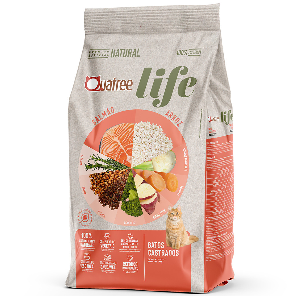 Ração Quatree Life Salmão e Arroz Para Gatos Castrados Pacote De 3KG