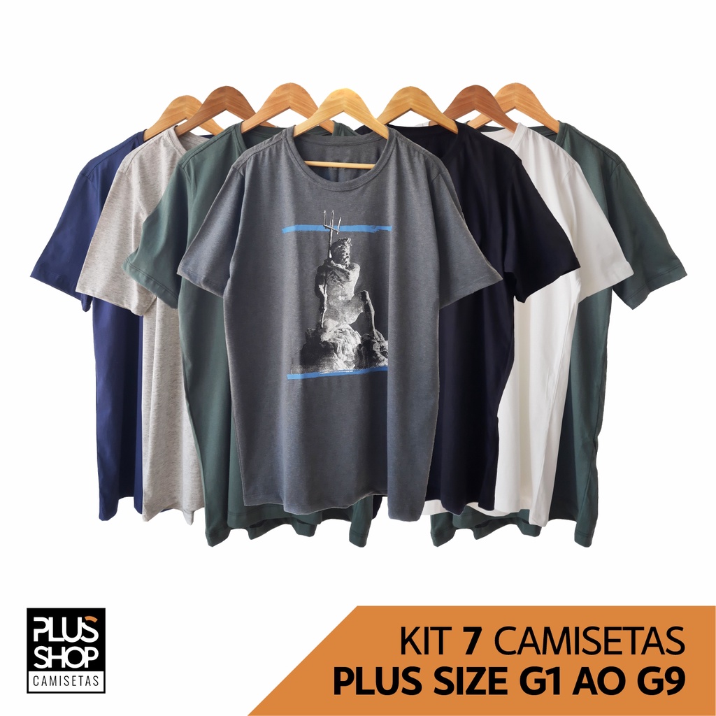 Kit 5 Camisetas Plus Size Masculina Camisa Blusa 100% Algodão 30.1 G1 ao G9