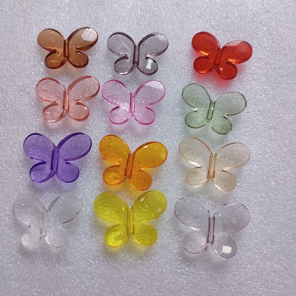 Borboleta de Acrílico Com Furo Passante 2,5cm x 2,9cm 10 Unidades Para Artesanato