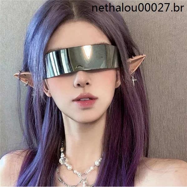 Y2k Futura Moldura Oval Estilo Cyberpunk Óculos de sol