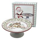 Prato Para Bolo C/ Pé Boleira Tema Natalino Natal Cerâmica