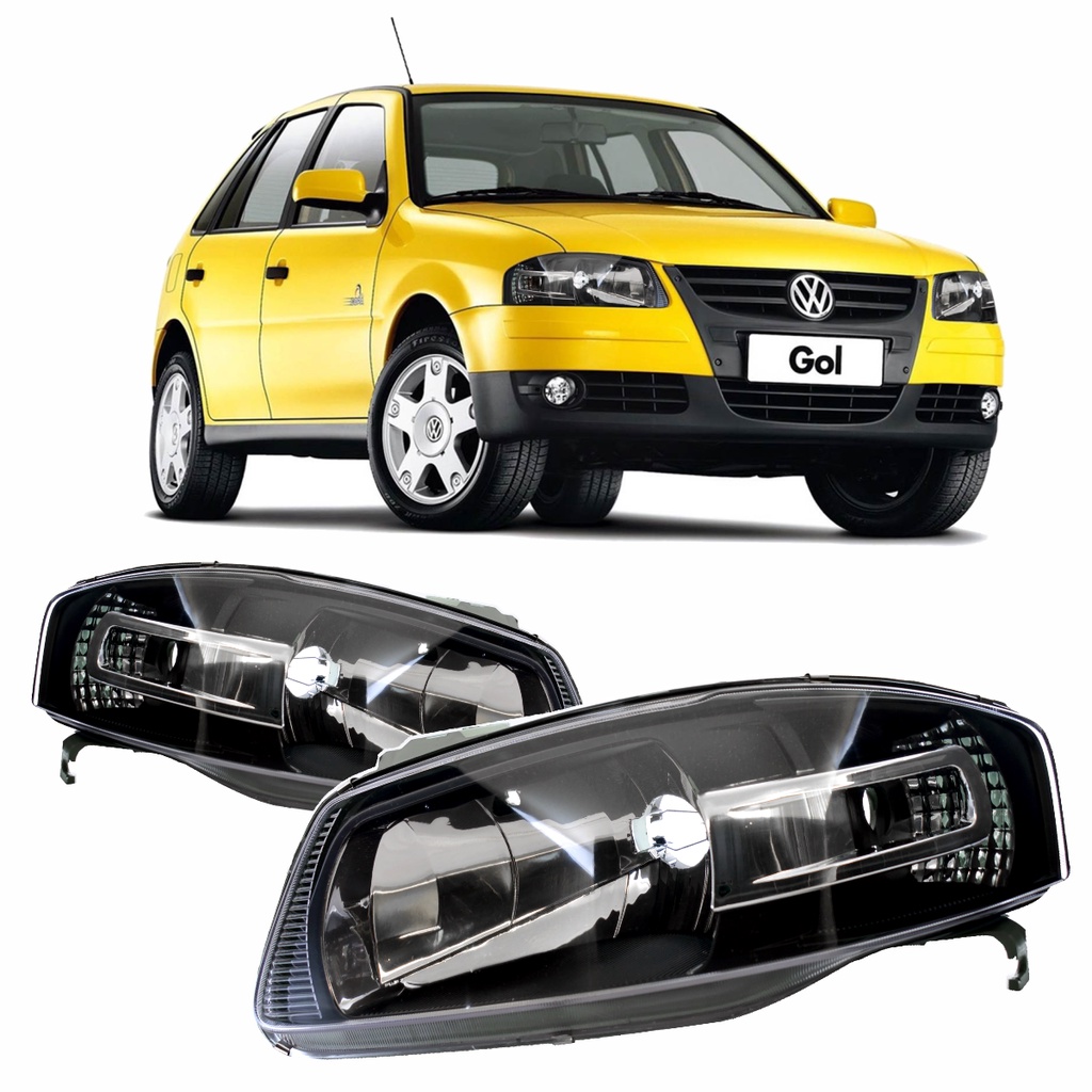 Par Faróis VW Gol Saveiro Parati G4 2006 a 2014 Máscara Negra Original