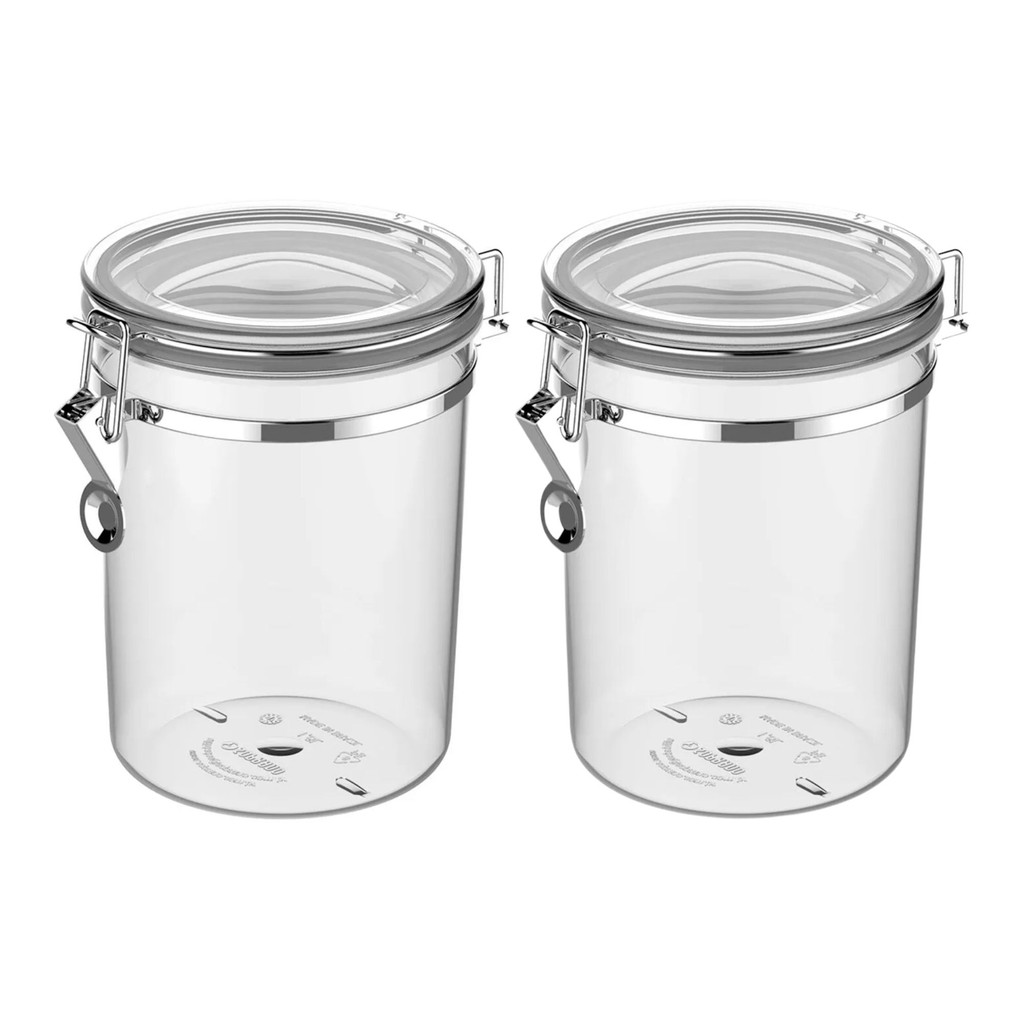 Kit 2 Pote Hermético Redondo Napoli Com Travas Presilhas 1L / 1,6L Design Elegante Prático Versátil