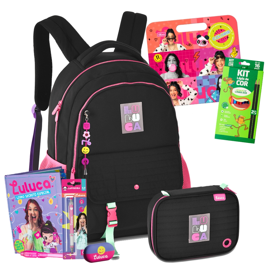 Kit Super Mochila Costas Estojo Coleção Nova 2025 Luluca Teen Youtuber Famosa Feminina Nylon Escolar