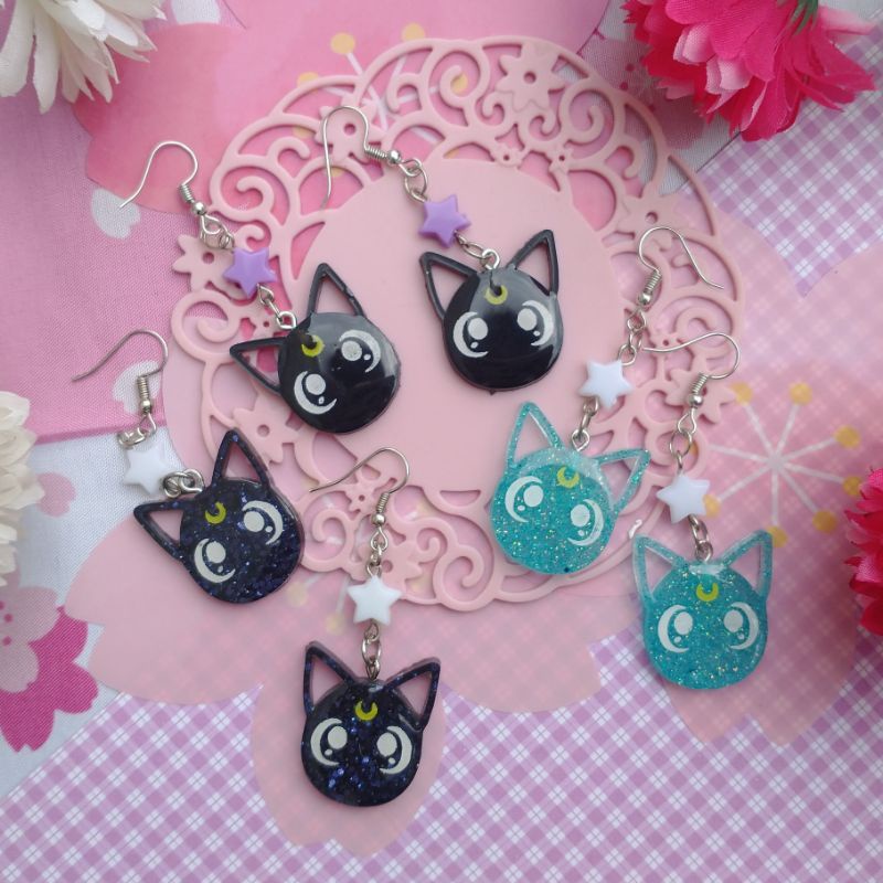 Brinco Sailor Moon Lua e Artemis | Anime acessórios fofo de resina Hana Store