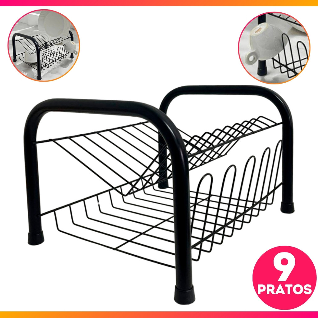 Escorredor De Louças Versátil Duplo Compacto Secador Copos 9 Pratos 2 Andares