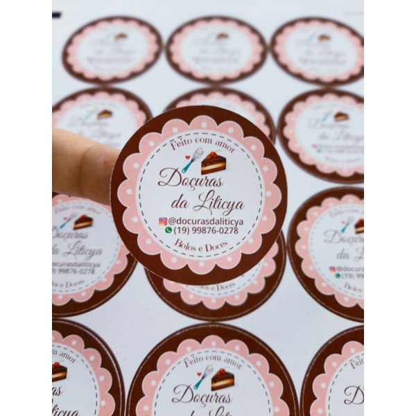 500 Rótulos Adesivos 3x3cm (ADESIVO PEQUENO) com sua marca Lojas, Bolos, Doces - ATENÇÃO COM A MEDIDA DO ADESIVO