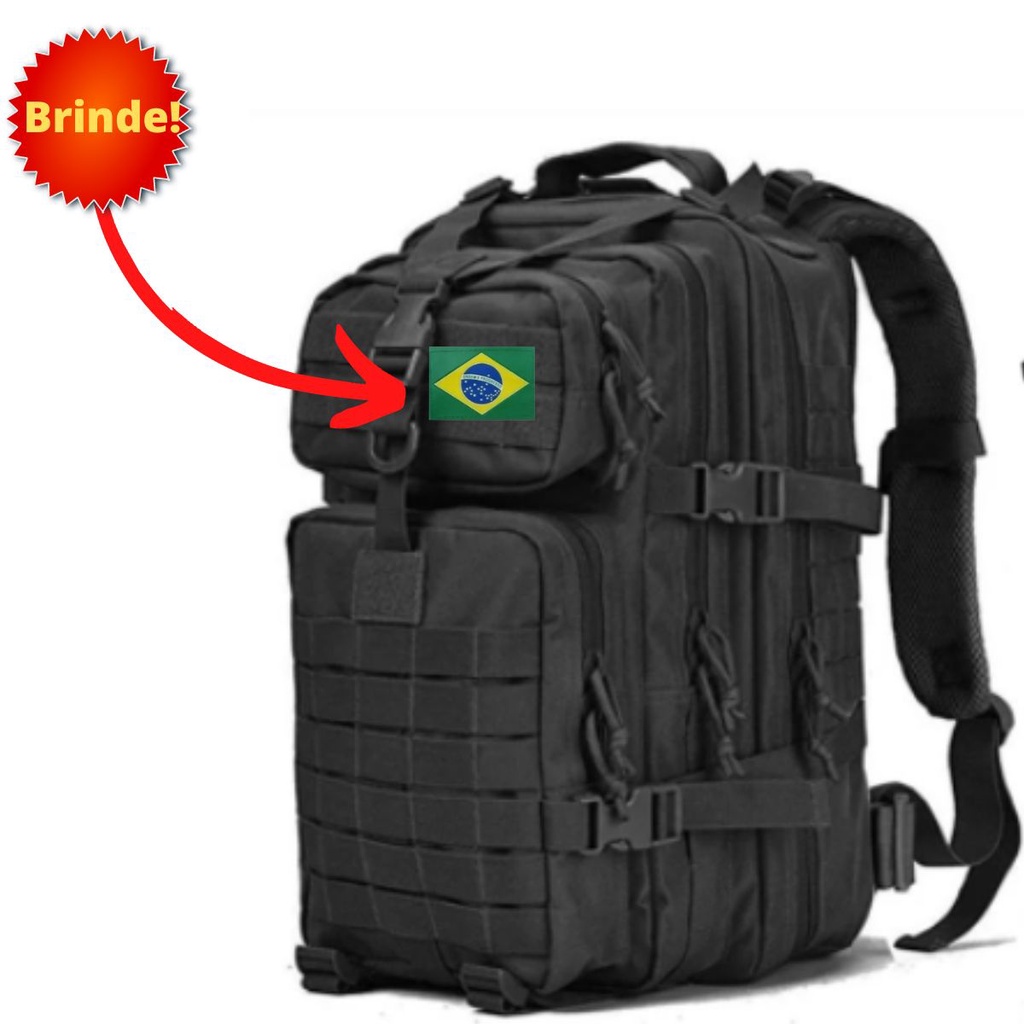 Mochila Militar Tática 50 Litros Grande Impermeável Reforçada com Bandeira Qualidade Premium