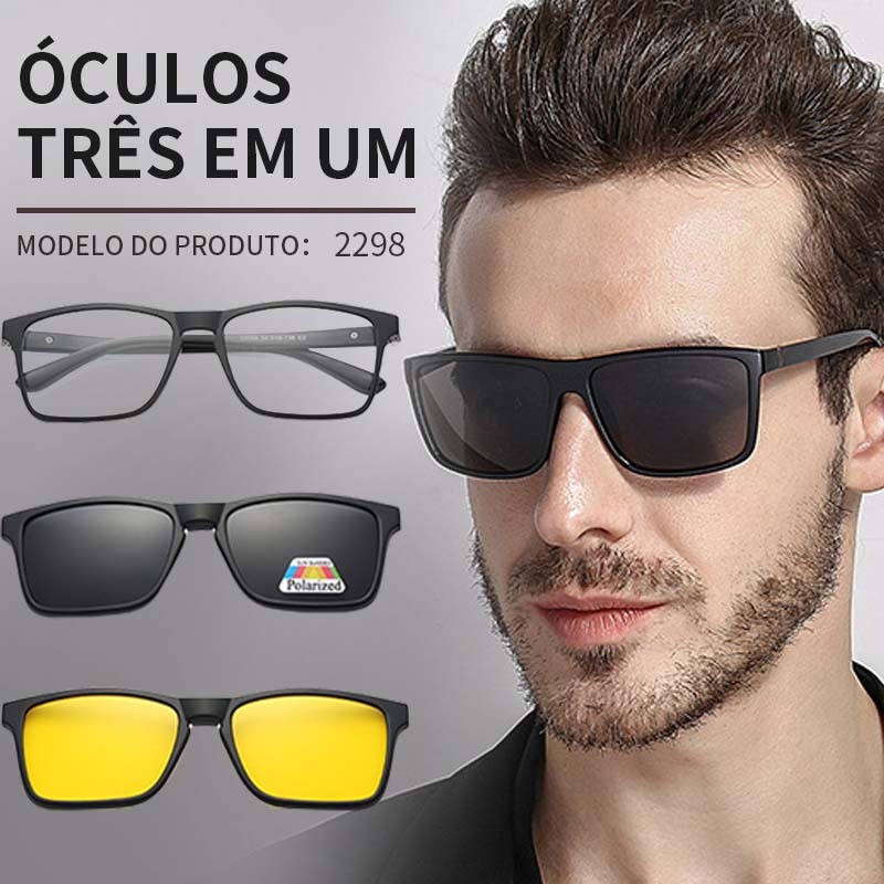 Carnaval Armação de Óculos e Clip On Solar 3 em 1 preto e amarelo masculino eniva imediato Praia, condução noturna, óculos de carro e motocicleta luz anti-azul