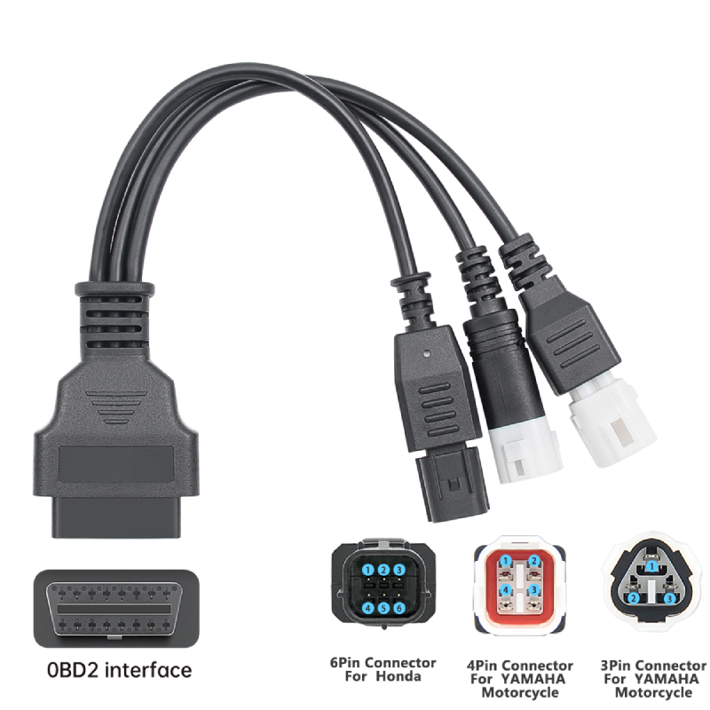 Conector 3 Em 1 OBD2 6 Pinos Para Honda Yamaha Y15 V2 Y16 N-MAX X-3 E 4 Motocicleta 16Pin OBD 2 Cabo De Extensão OBDII Diagnostico