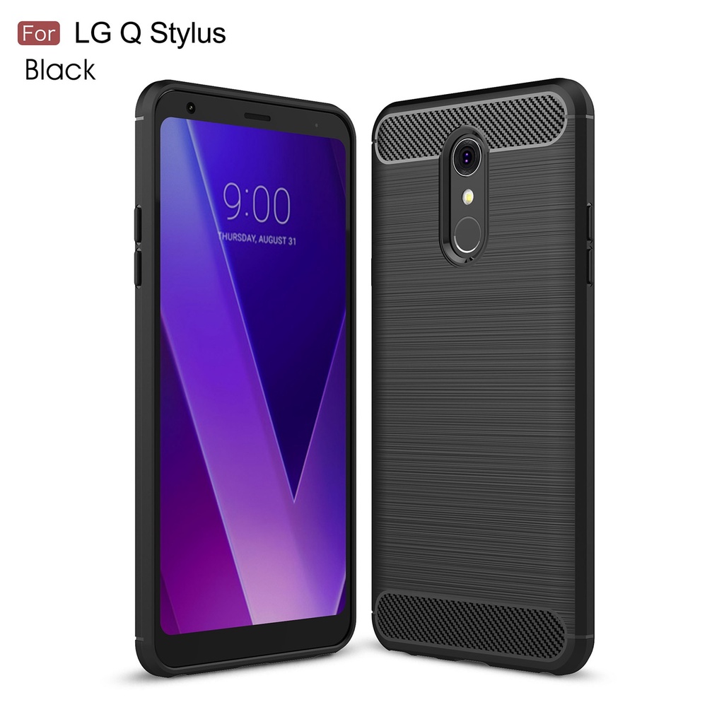 Para LG Q Stylus Caso De Telefone Macio Escovado Borracha Capa De Silicone Casos De Fibra De Carbono Bumper Em 6.2 "