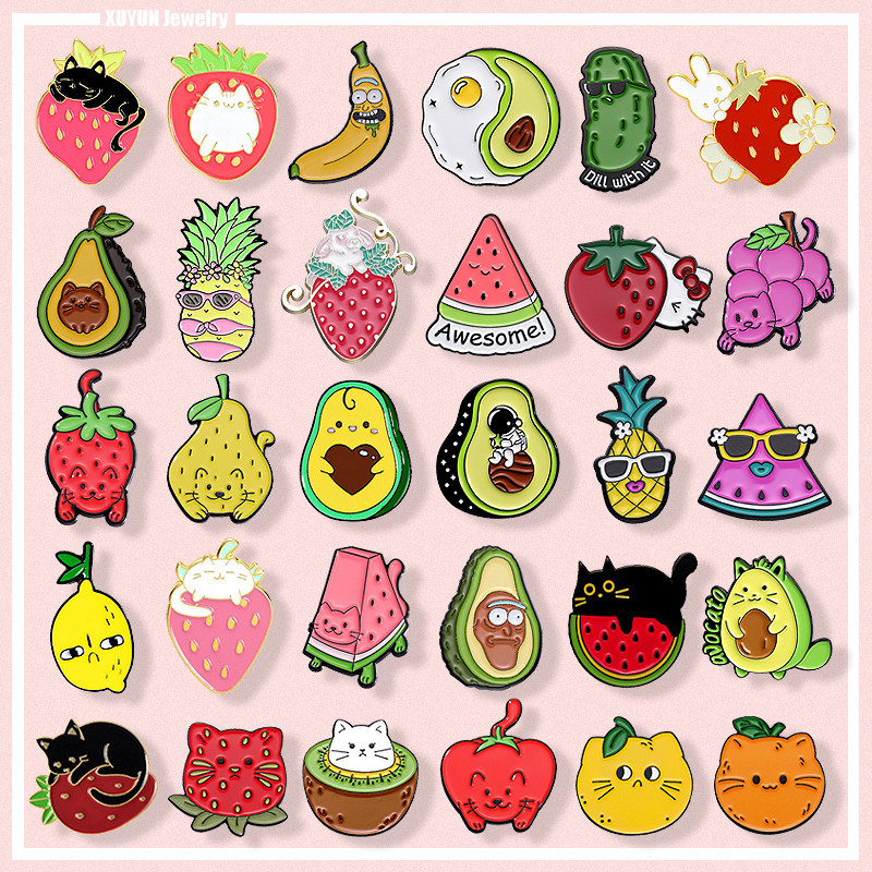 Desenho Animado Frutas E Animais Série Broche Fofo De Morango Melancia Abacateiro Metal Crachá Comida Gato Esmalte Acessórios De Vestuário Jóias Presentes Para Amigos