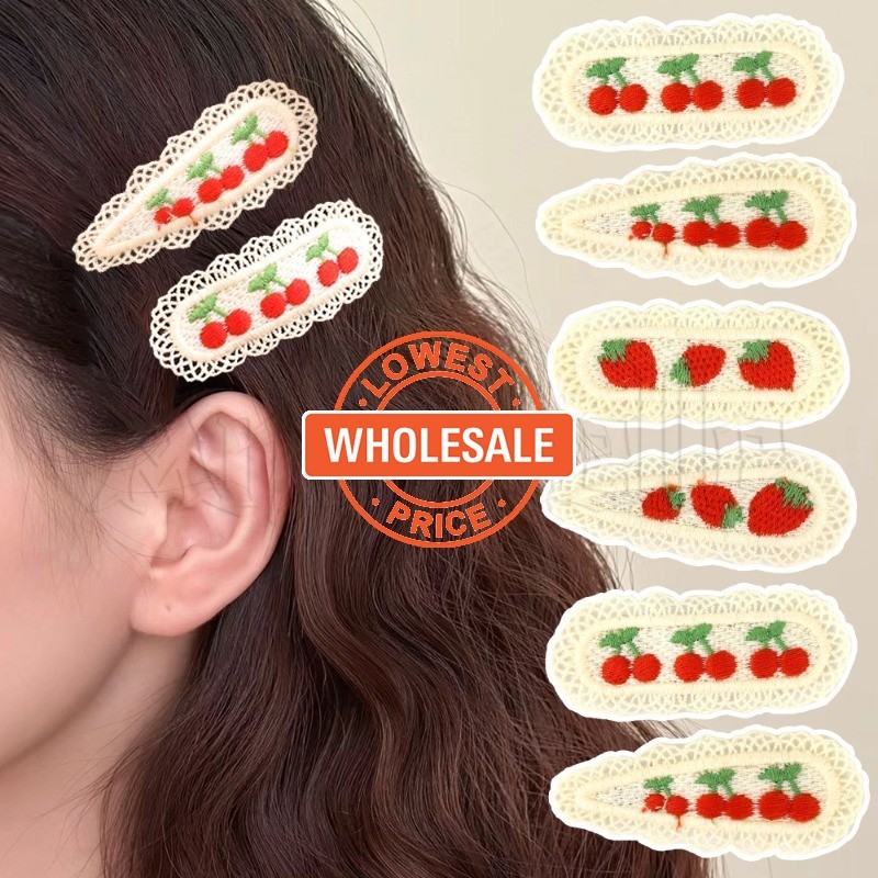 [Atacado] 2 Peças De Grampo De Cabelo Cereja Tricotado – Prendedor Bordado De Morango Chapéu De Frutas De Desenho Animado Doce Clipes Laterais Fofos Acessórios Presilhas De Menina Outono Inverno