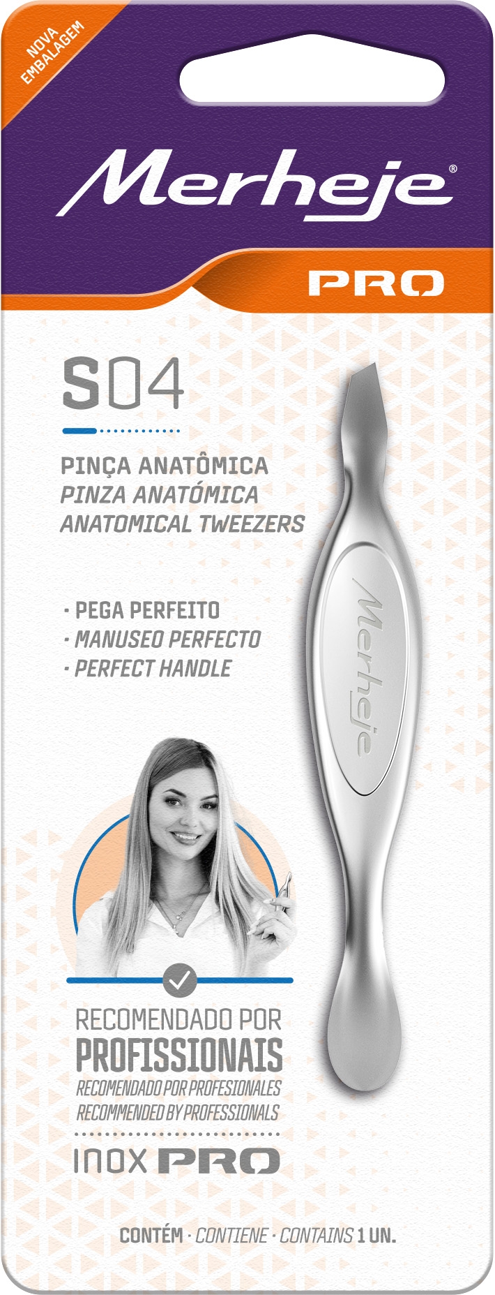 Pinça Depilatória Anatômica Merheje Pro S04 - 1 Unidade