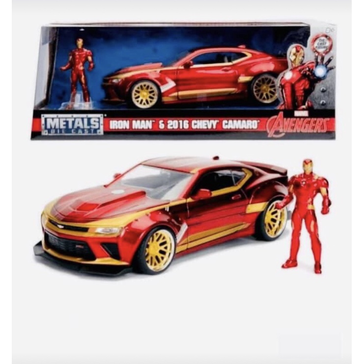 RARIDADE!! Miniatura Carro Carrinho Colecionável Coleção Chevrolet Metal Camaro 2016 Licenciado C/Figura Homem De Ferro 1/24 !!