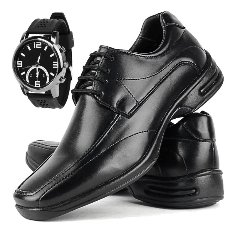 Kit Sapato Social Masculino Ortopédico Casual Elegante Com Palmilha Em Gel + Relógio Original