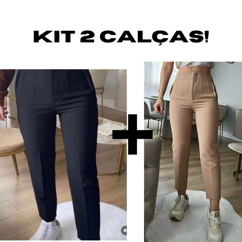 Kit 2 Calça Zara De Alfaitaria elegante bloguerinha Moda Feminino Cintura alta Preta e Bege Social