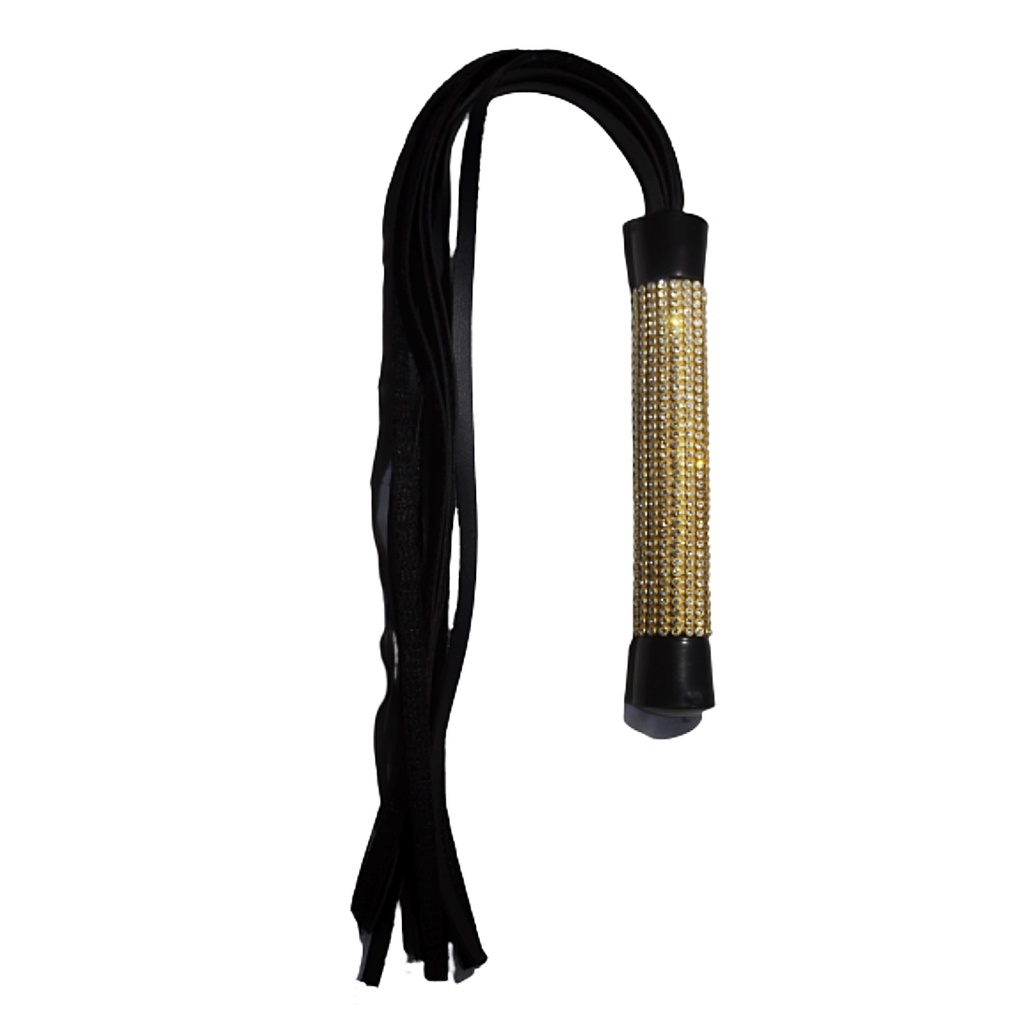 Chicote com Strass Dourado Brilhoso Couro Sintético FETICHE BDSM