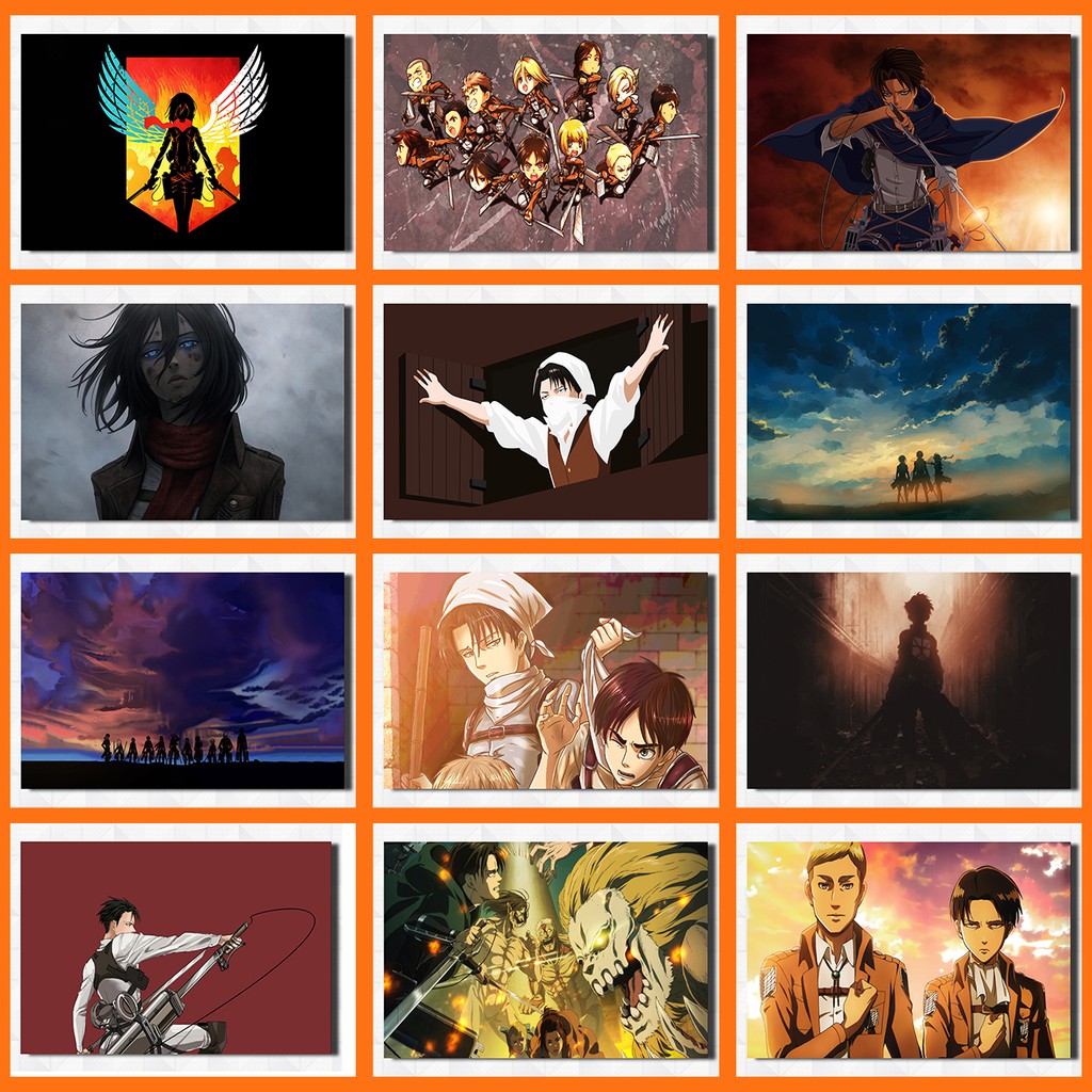 ATTACK ON TITAN - Quadros e Placa Decorativa de Parede para quarto e sala tema Eren Yeager Armin Levi Shingeki No Kyojin Titã Mikasa Manga mosaico poster Quadro parede e decoração séries, filmes e animes Nerd Geek kit combo presente Nova Edição hq 45