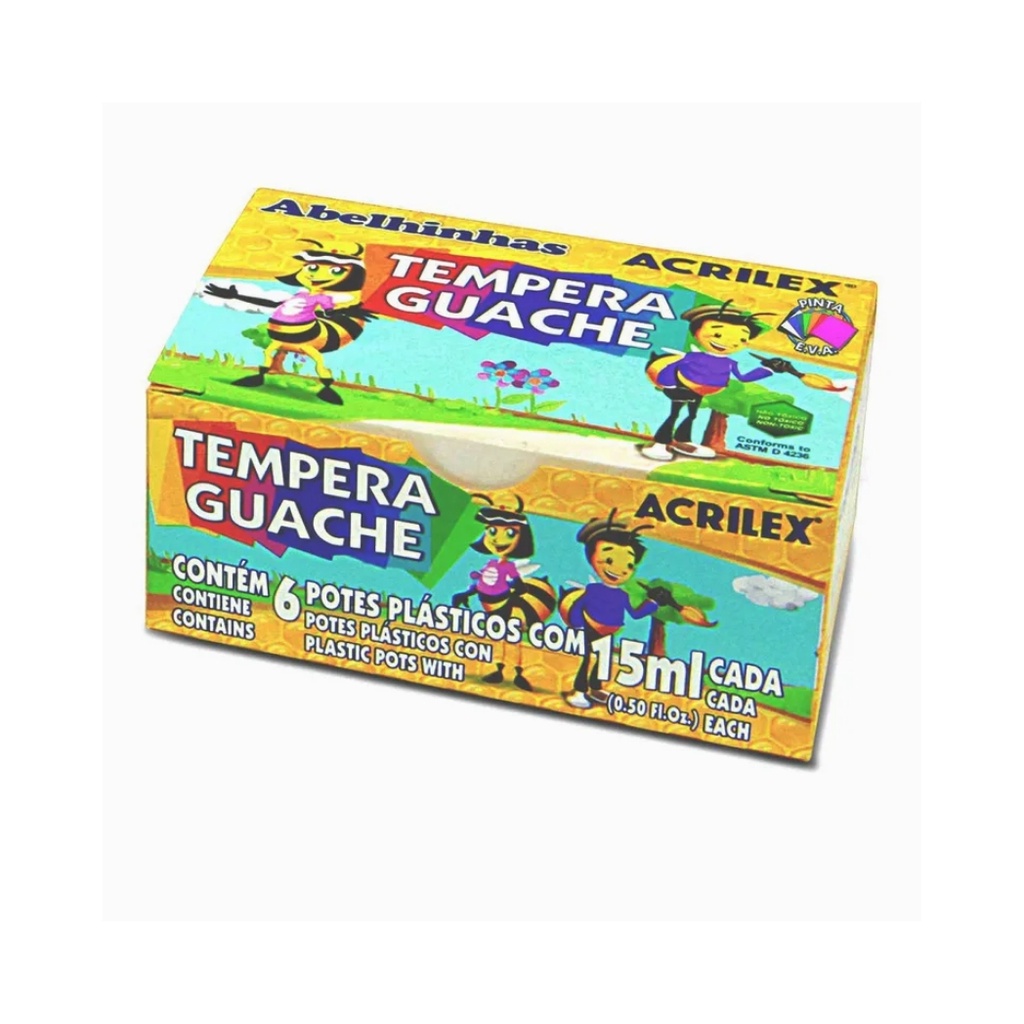 Tinta Guache Acrilex 15 ML Pote Com 6 Cores Variadas Papelaria