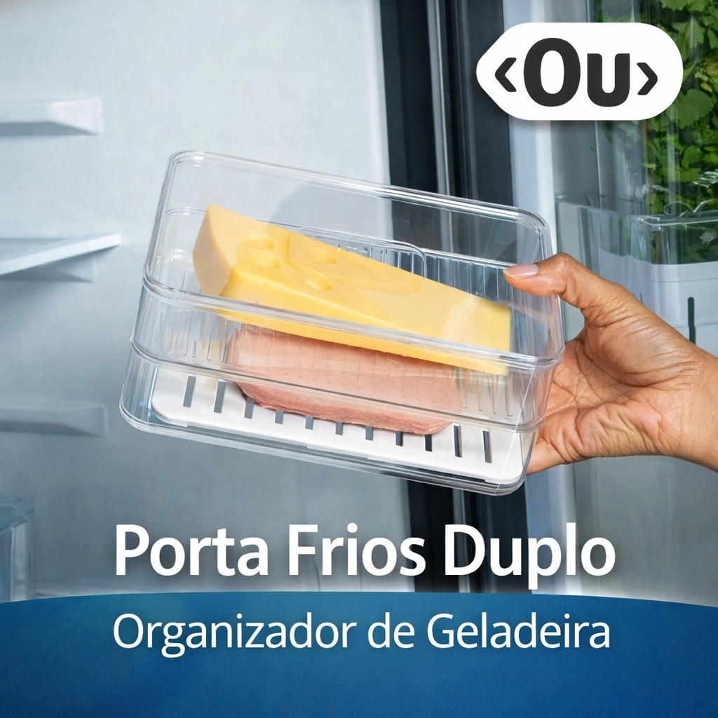 Porta Frios Duplo Organizador de Geladeira Transparente Com Divisória Queijo Presunto OU