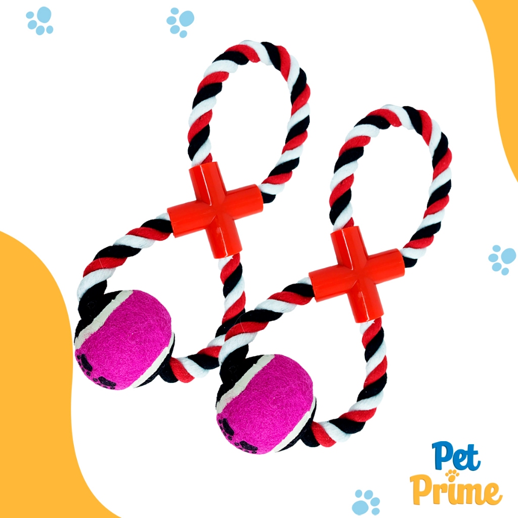 Kit 2 Brinquedo Puxador de Corda p/ Cães com Bola Tênis Savana Pet