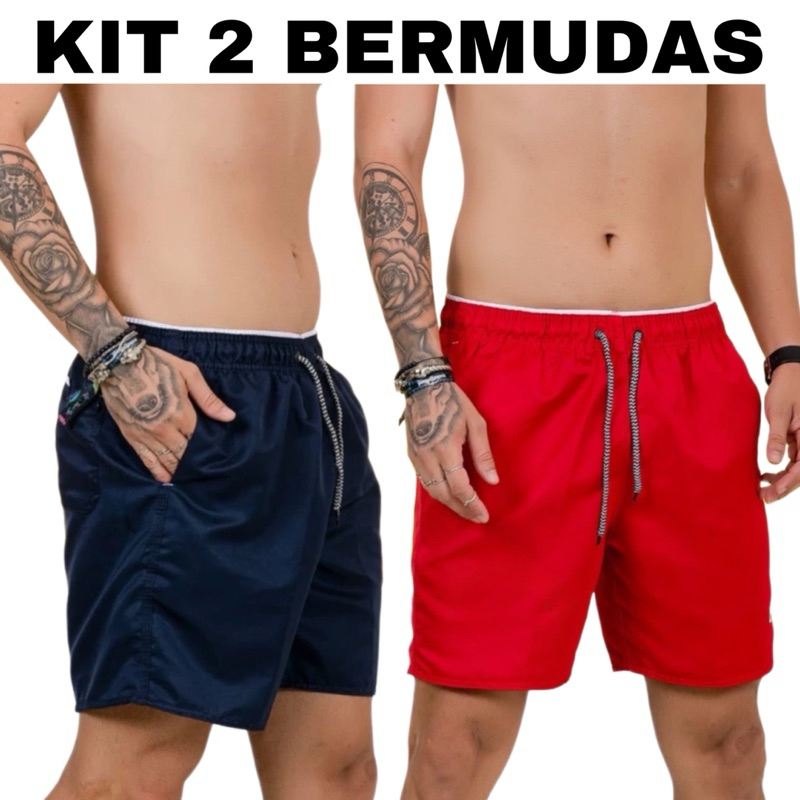 KIT Com 2 Bermuda masculina roupa Short academia masculino tactel elastano