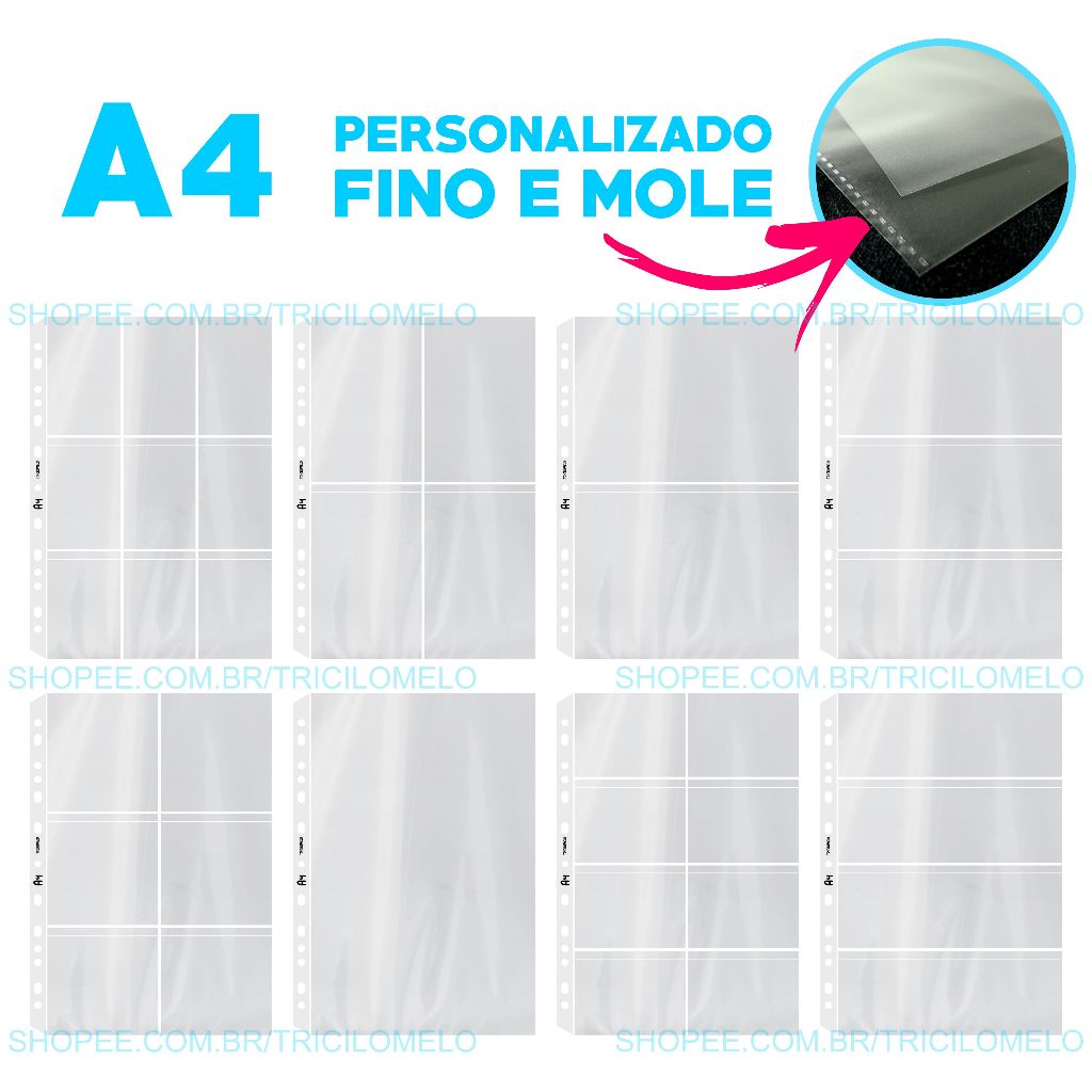 Kit 10 Folhas Binder Saco Plástico A4 Fichario Photocard Polipropileno 1 2 3 4 6 8 9 Bolsos yes Selos Filatelia
