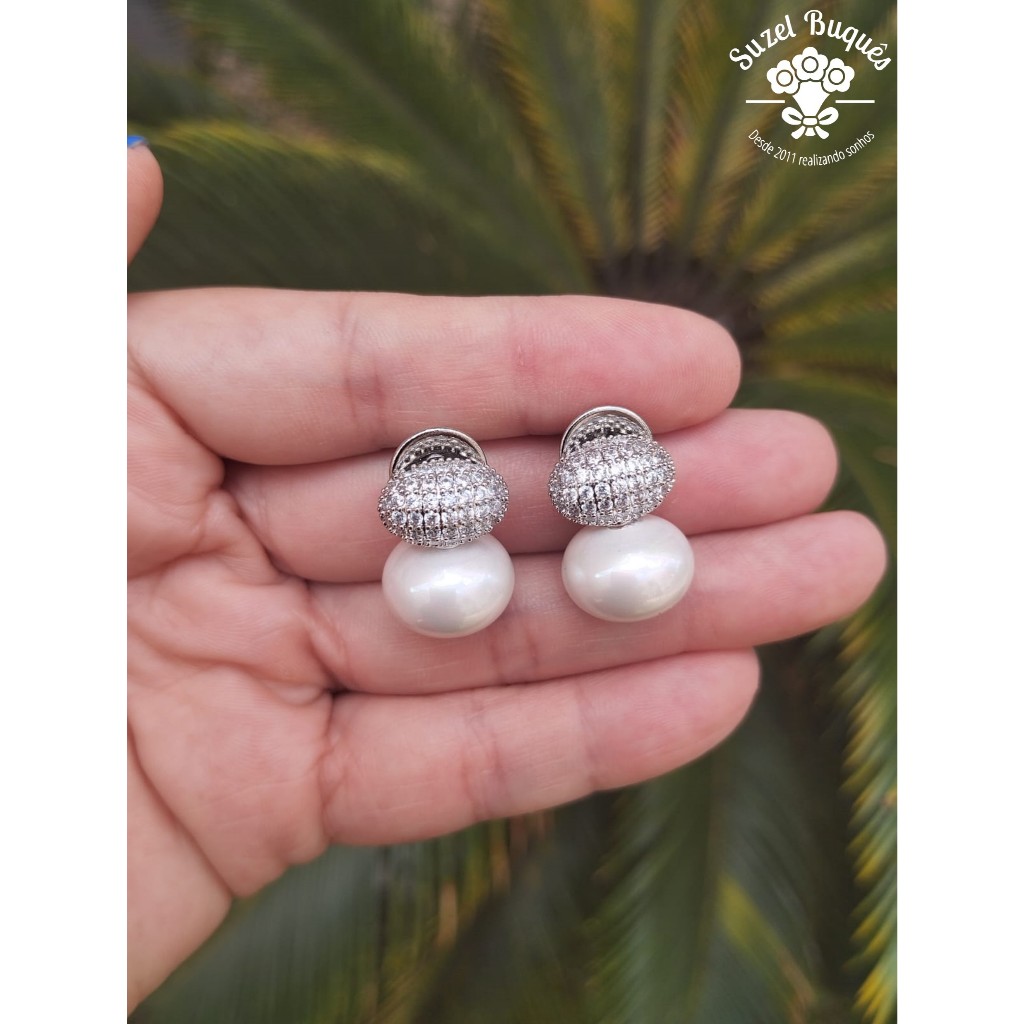 Brinco Prata Festas Noivas Casamentos Zircônia Pérolas