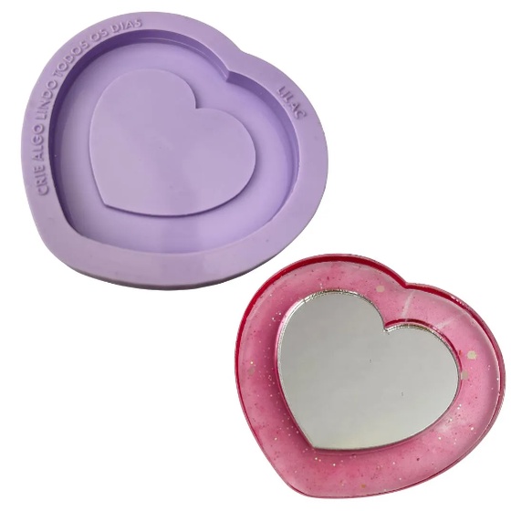 Molde de Silicone para Resina Espelho de bolsa Coração - 1 cavidade (6,3 cm)