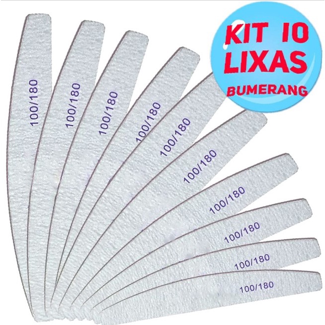 Kit 10 Lixas Bumerangue Meia Lua ou Banana/Boomerang/Caixao 100/180 Unha Porcelana Acrigel Fibra Oferta Gel