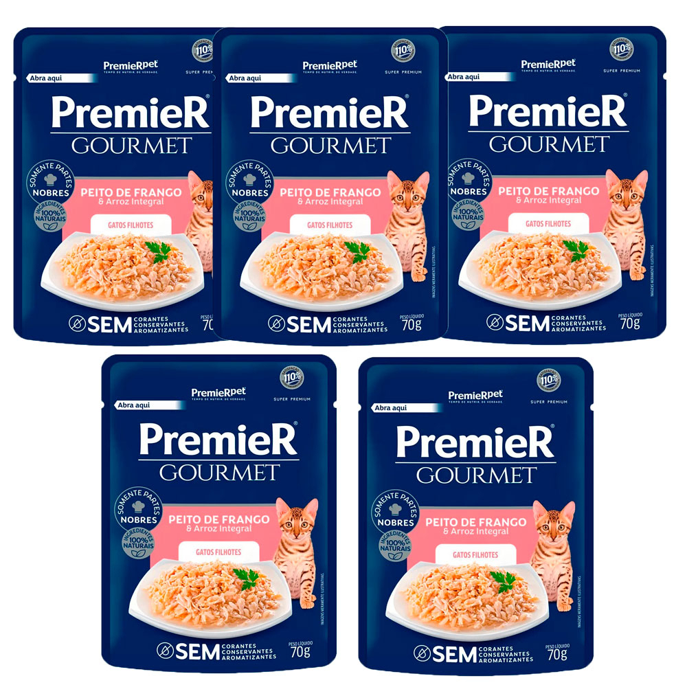 Kit com 5 Rações Úmidas Premier Gourmet Gatos Filhotes Peito de Frango/Arroz 70g