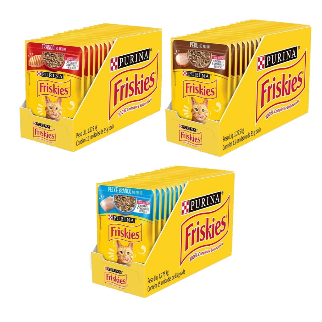 Friskies Kit Ração Gatos Úmida de Frango, Peru e Peixe ( 45 Saches de 85g )