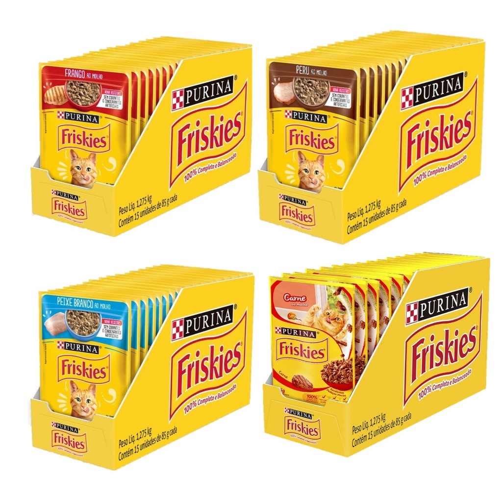 Kit 3 caixas de sachê friskies ração umida para gatos - Sachê Friskies 85g caixa fechada com 15 Unidades