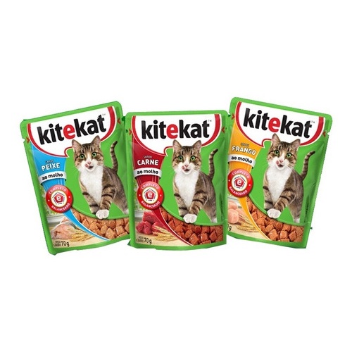 Caixa com 12 Sachês de Ração Úmida para Gatos Kit&kat 70g