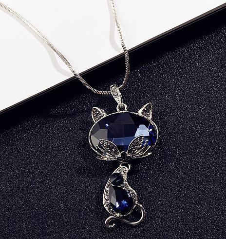 Nova moda Blue Crystal Fox Cat Colares e pingentes longos para mulheres simples e elegantes correntes de suéter de joias da moda