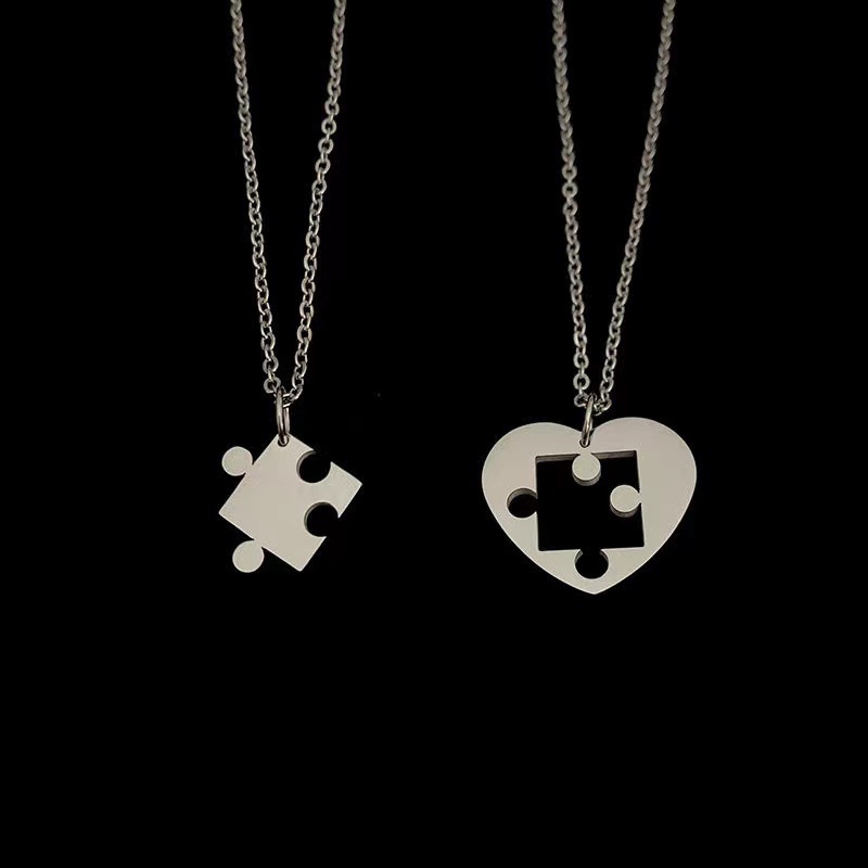Quebra-Cabeça De Aço Titânio Colar Selvagem Casal Um Par Pingente Acessórios Jóias