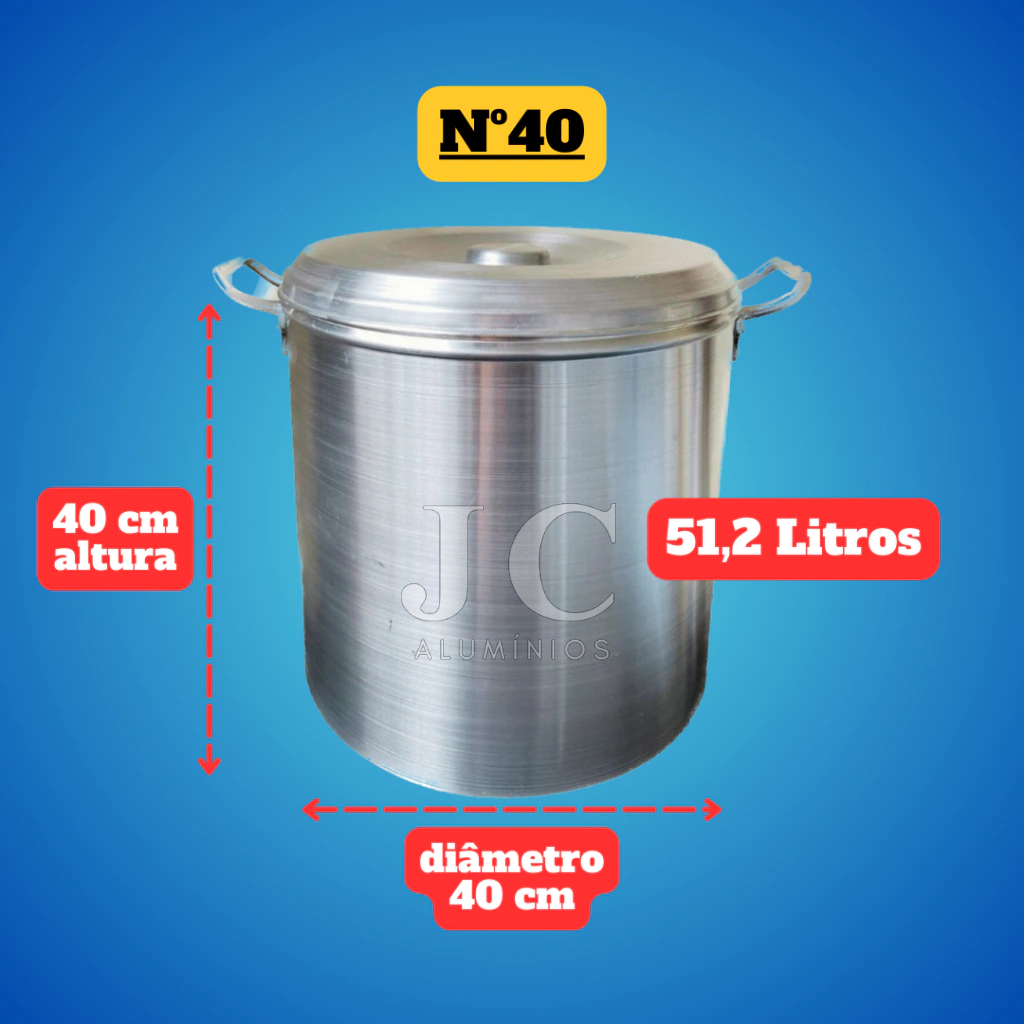 Caldeirão grande Hotel N 40 - 51,2 Litros Panela De Alumínio Linha Industrial Cervejeiro