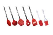 Kit Utensílios De Cozinha Silicone Com Inox 7 Peças Vermelho