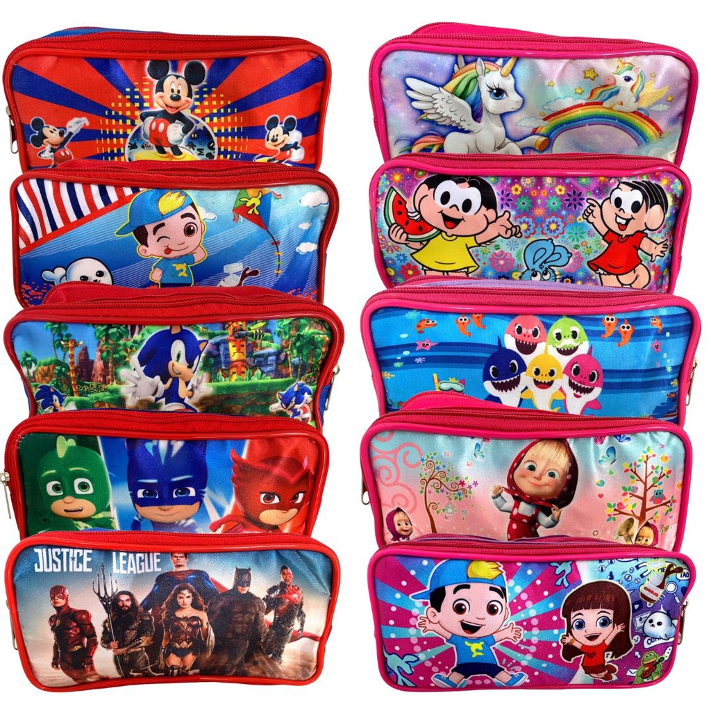 Estojo Escolar Duplo 30 Personagens Diferentes 2 Divisórias Menino Menina
