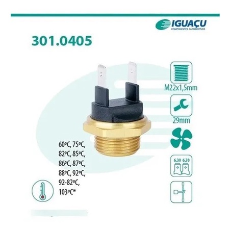 Interruptor Cebolão Radiador GOL 81° até 92° com plug 2 pinos carro acessório Unviersal