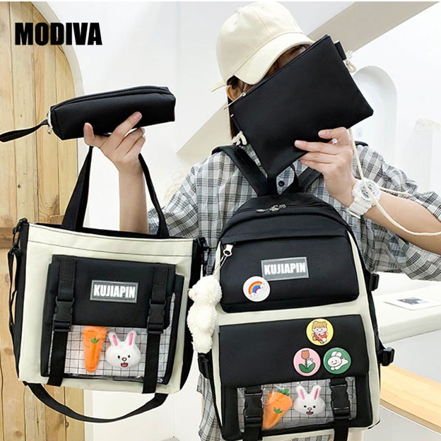 MODIVA 4 Peças Conjunto de Mochila de Estudante Unissex de Grande Capacidade Mochila Casual e Impermeável Estilo Campus
