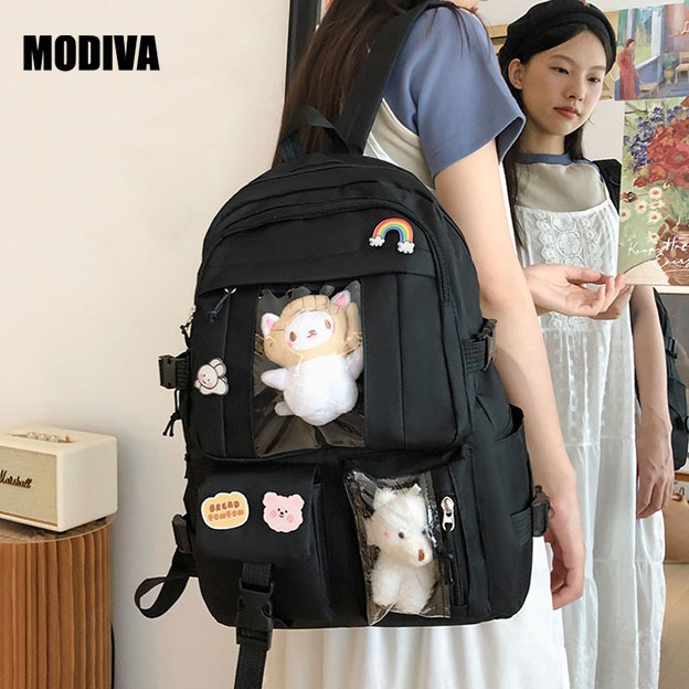 MODIVA Mochila Escolar De Grande Capacidade, Impermeável, Estilo Coreano Feminino(Brinde com pingente de pelúcia)