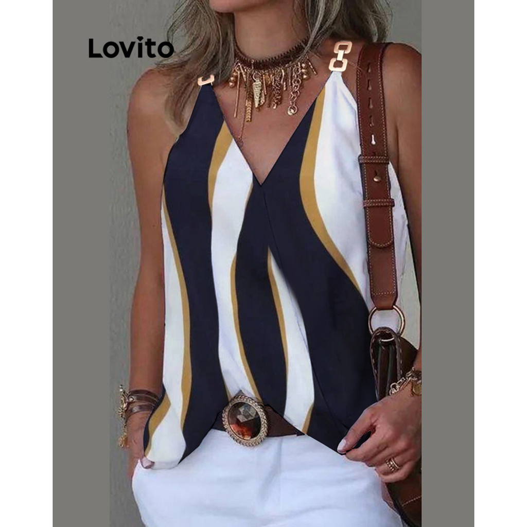 Lovito Regata Casual De Metal Geométrico Para Mulheres LNL50067