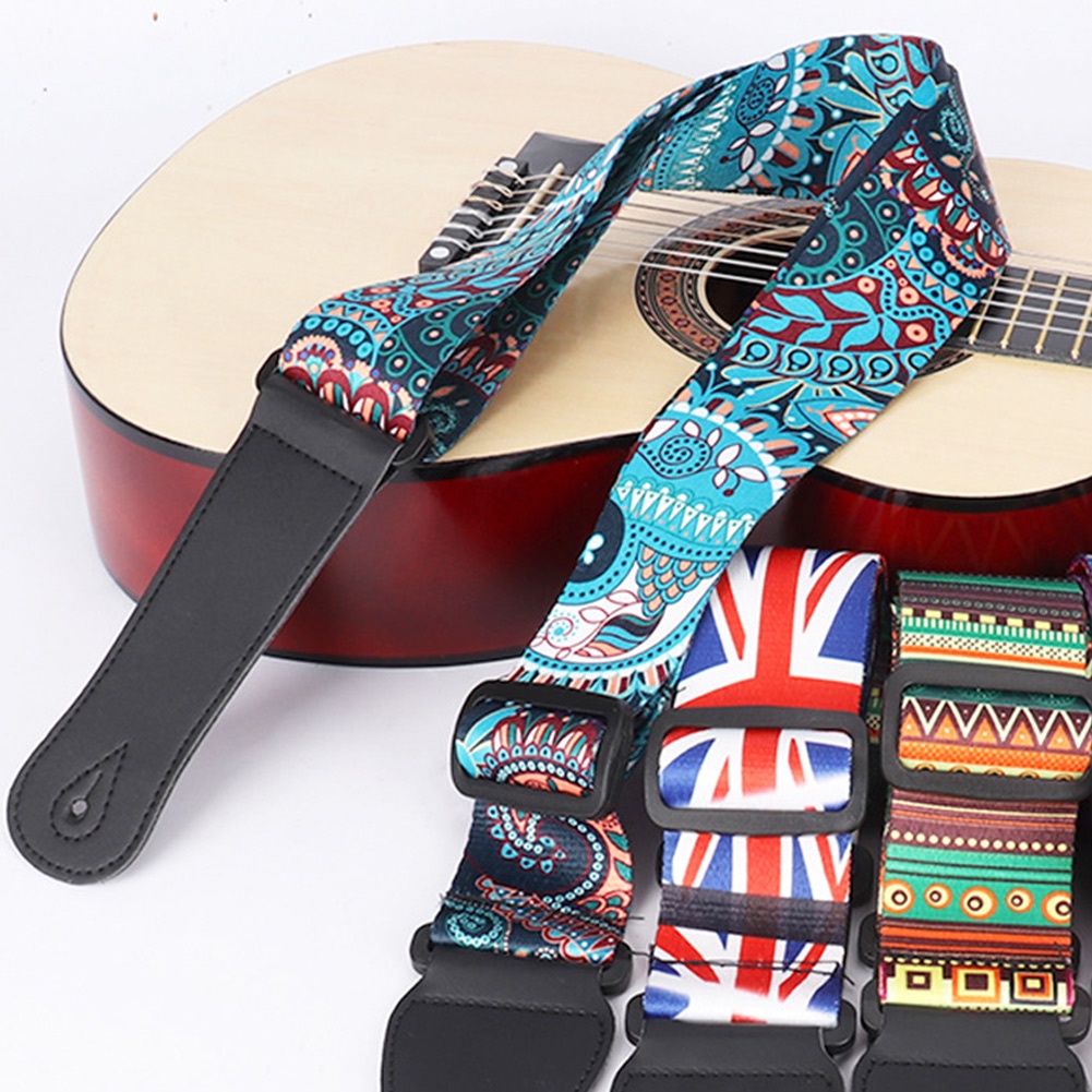 Cinta de guitarra ajustável com estampa colorida, pulseira de guitarra de nylon, venda quente, baixo acústico, acessórios para guitarra elétrica